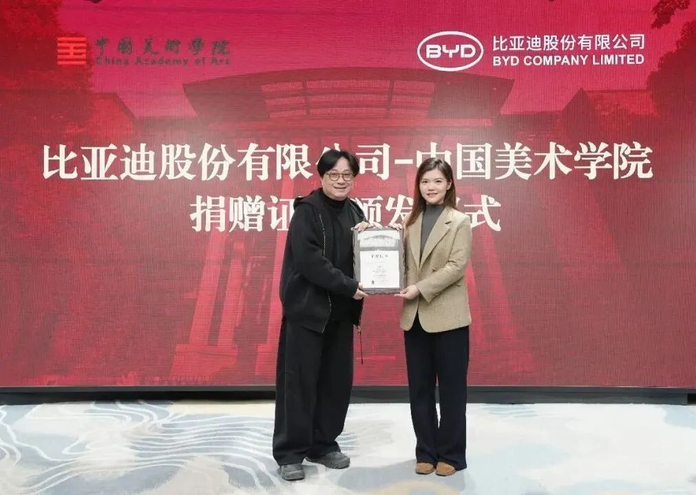 研究生工作部部长、研究生处处长王一飞为比亚迪股份有限公司代表颁发捐赠证书比亚迪股份有限公司设立为期十年的专项基金,用于奖励我校优秀师生,持续助力人才培养,期待未来在人才共育、项目共创上取得更多突破。工业设计学院党委书记刘征为小米汽车科技有限公司代表授牌