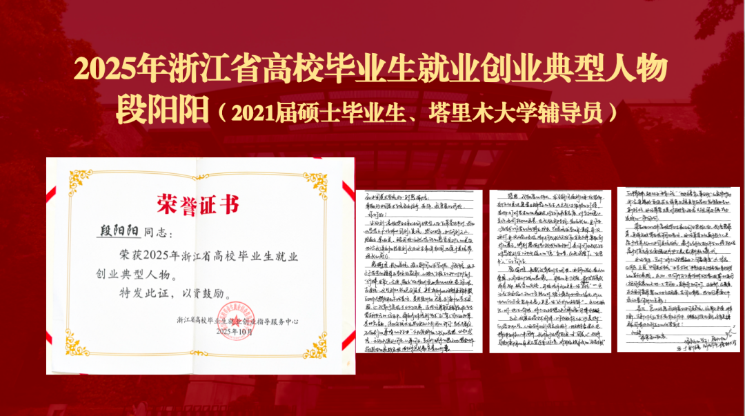 2021届毕业生段阳阳获评2025年浙江省高校毕业生就业创业典型人物,展现了国美人“到祖国最需要的地方去”的使命与担当。