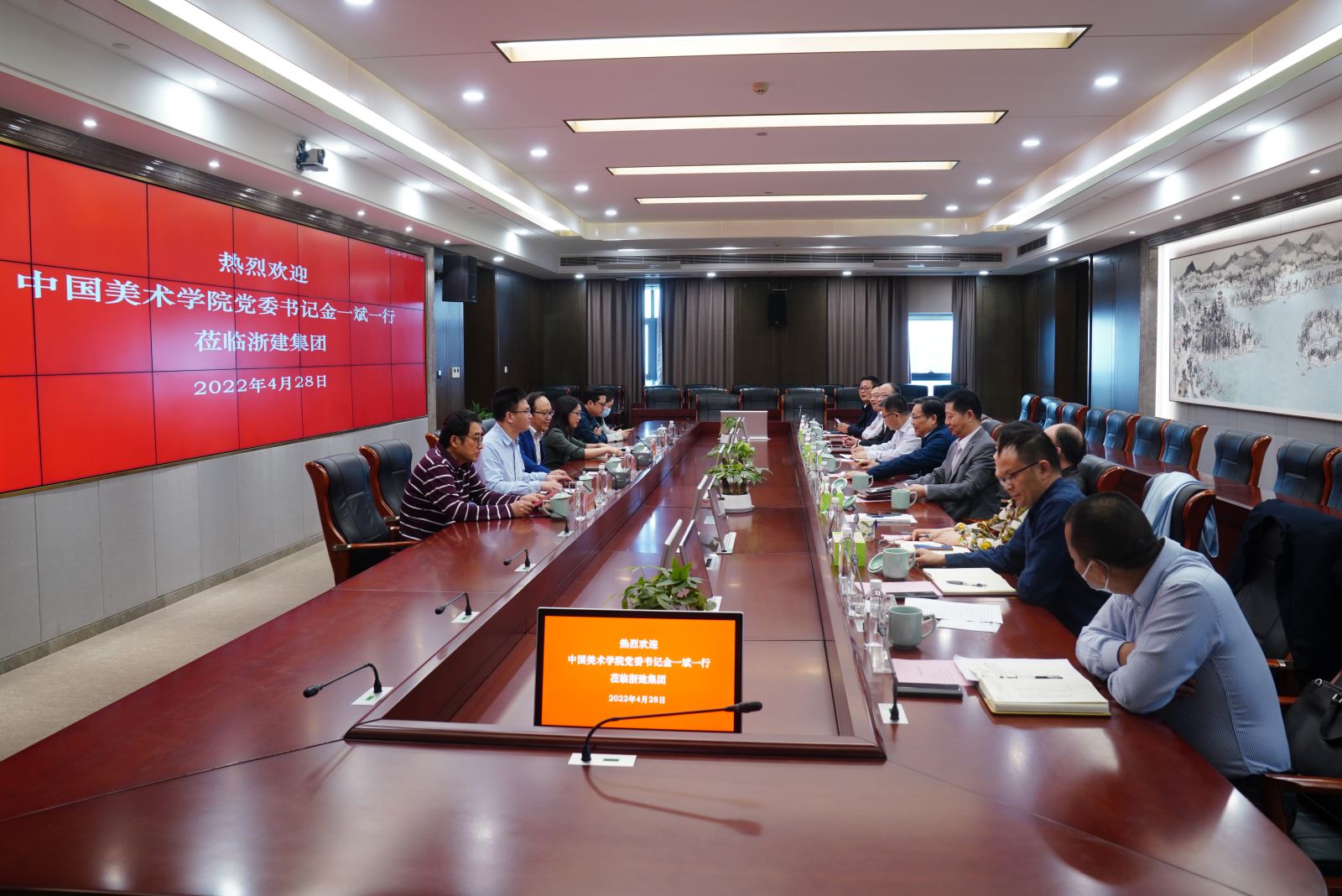 金一斌介绍了中国美院的发展历史、人才培养、学科建设等情况。他表示,中国美院一直牢记习近平总书记重要嘱托,加快建设世界一流大学,在服务国家重大战略中积极担当。希望能与省建设集团这样集投资、设计、建造、运维于一体的现代建筑服务全产业链企业集团进一步深化对接,加强合作互信,在推动乡村振兴领域专业融合、校企间产学研交流、人才培养等方面发挥各自特色优势,开展更全面、更广泛的合作,以合作的实际成果助推我省高质量发展共同富裕示范区建设。