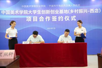 为贯彻实施乡村振兴战略、助推社会经济发展,7月16日上午,我校创业学院与宁海县西店镇举行校地合作签约仪式,标志着校地双创实践教育“产学融合”全面深化。校学工部部长、创业学院常务副院长竺照轩等出席签约仪式,中国美院学工部、创业学院以及西店镇相关负责人、西店镇企业代表等参加仪式。